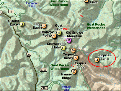When you arrive at Surprise Lake, bear to the left and follow a user trail