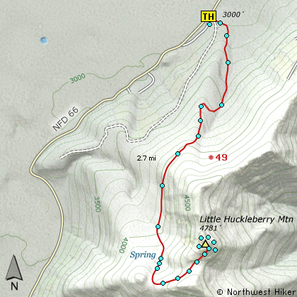 is the parking area for the trailhead to Little Huckleberry Mountain.