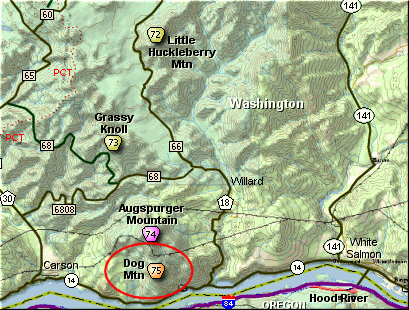 the western flank of Dog Mountain. But