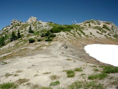 trail breaks over the ridge so you can see Mt. Whittier and Mt. Rainier