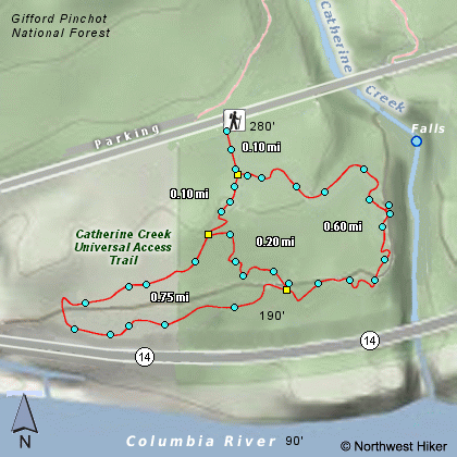 follow it 1.4 miles to the Catherine Creek parking lot on the north