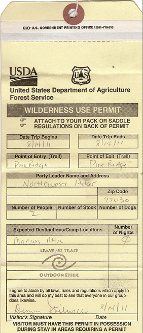 Permits are required to enter any Wilderness on the Gifford Pinchot National Forest. These permits are free, and may be self-issued at trailheads.