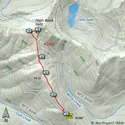 will come to the junction of Forest Road 8440. Bear right onto FR8440 and follow it for another 2.7 miles,