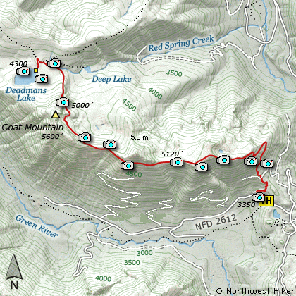 the Goat Mtn TH. You continue on for a about 3.7 miles and you will pass the spur