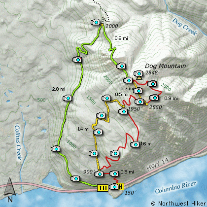 Dog Mountain to the north. Continue on