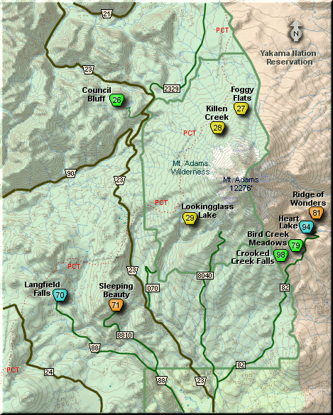 Northern Central Goat Rocks Mt Adams SE Hikes SW Hikes St Helens Main Menu